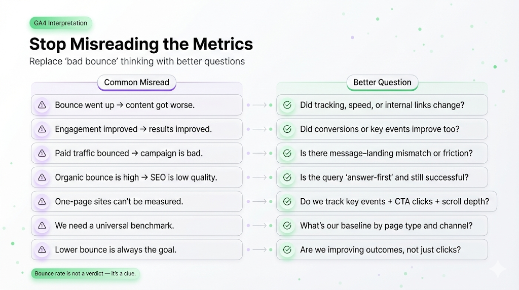 4) The trap: “Bounce rate is bad” (and how to replace it with better thinking)